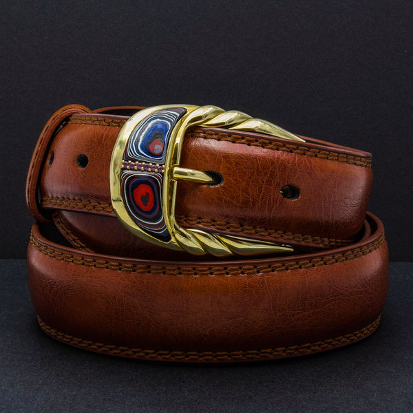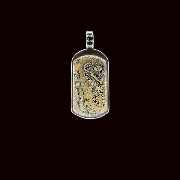 At the Affa, jewelry is crafted with Fordite to highlight the era of American automobile production through conscious design. It is also known as Detroit agate or Motor City agate, and was discovered in the automotive factories of Detroit, Michigan, where layers of enamel paint were built up on tracks, skids, and painting fixtures over many years. Salvaged from the factories, Fordite is valued for its beauty and history, reflecting the specific manufacturing processes and paint colors used in the factory where it was found.