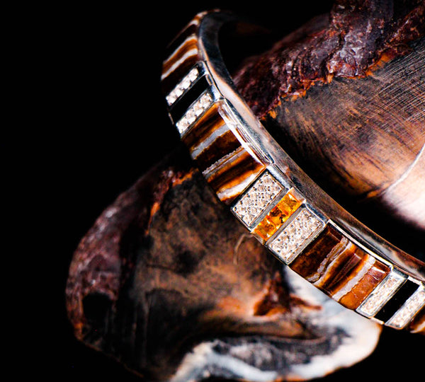 With their unique patterns and intriguing colours, fossils are a highly valued material used in jewelry and other decorative items. The use of fossils in jewelry dates back to ancient civilizations, such as the Vikings and the Inuit, who crafted intricate carvings from mammoth tusk. Affa Jewelry carves and inlays fossils with precious metals to create distinct pieces in a modern note to their vast history.